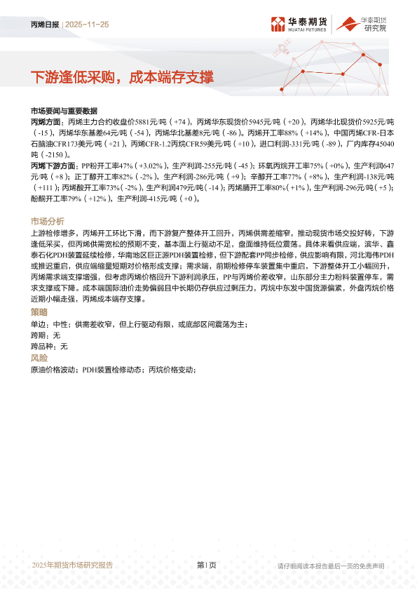 生产利润 下游采购 基差结构 成本支撑 丙烯