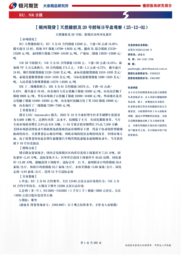 【银河期货】【202512】天然橡胶及20号胶每日早盘观察-205页