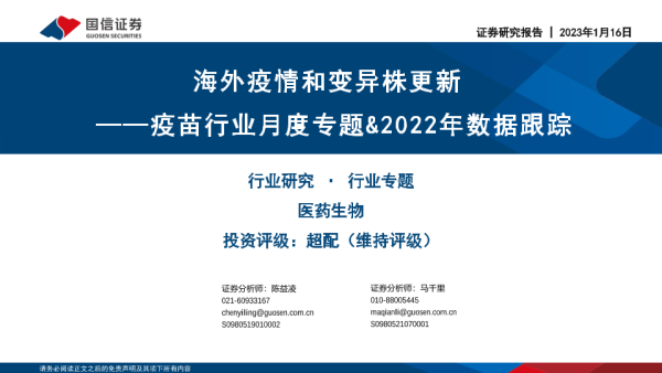 【国信证券】【20230116】疫苗行业月度专题&2022年数据跟踪:海外疫情和变异株更新-40页