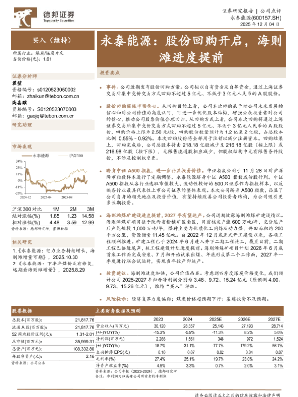 【德邦证券】【202312】永泰能源:股份回购开启,海则滩进度提前-3页