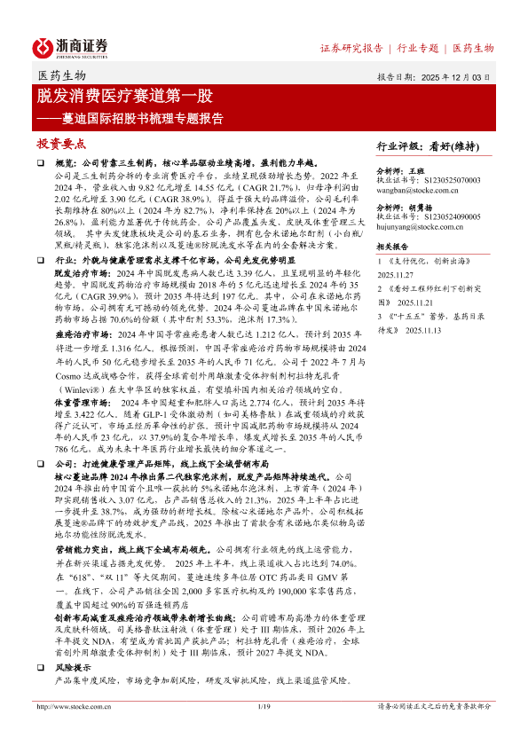 【浙商证券】【202512】脱发消费医疗赛道第一股——蔓迪国际招股书梳理专题报告-19页