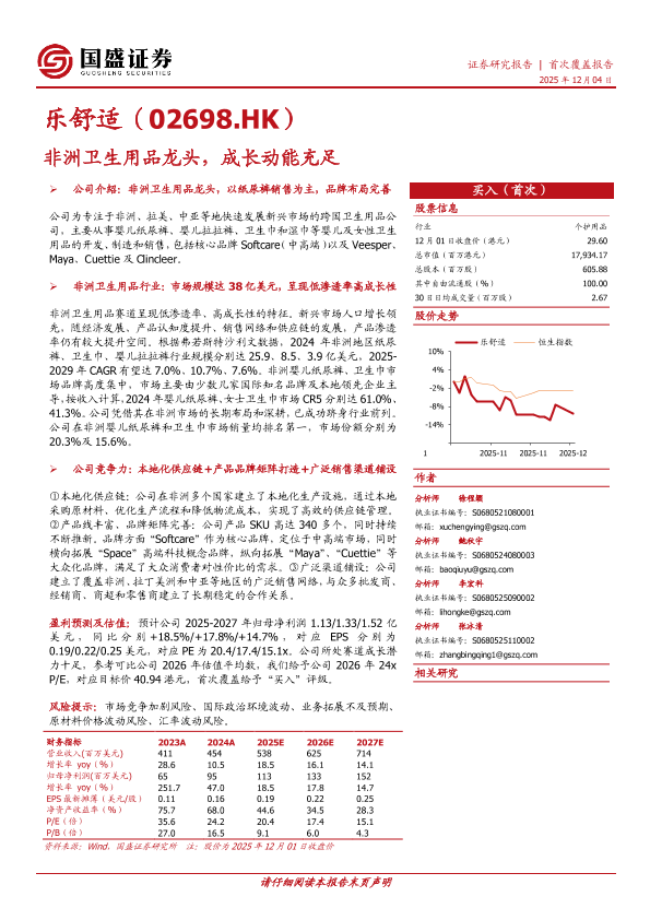 【国盛证券】【202512】乐舒适:非洲卫生用品龙头,成长动能充足-21页