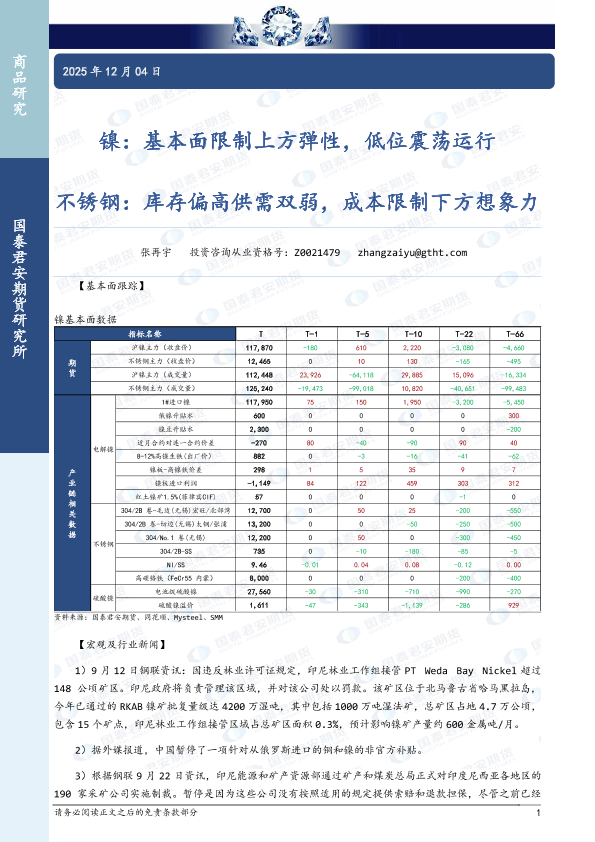 【国泰君安期货】【202512】镍:基本面限制上方弹性,低位震荡运行 不锈钢:库存偏高供需双弱,成本限制下方想象力-3页