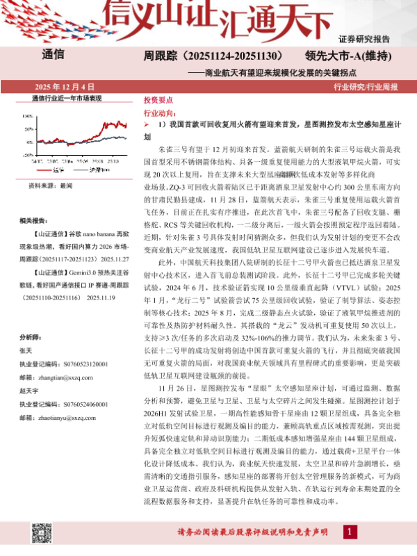 太空感知星座 可回收火箭 通信行业 政策支持 商业航天