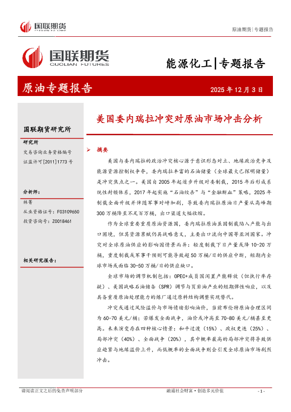 【国联期货研究所】【202512】美国委内瑞拉冲突对原油市场冲击分析-16页