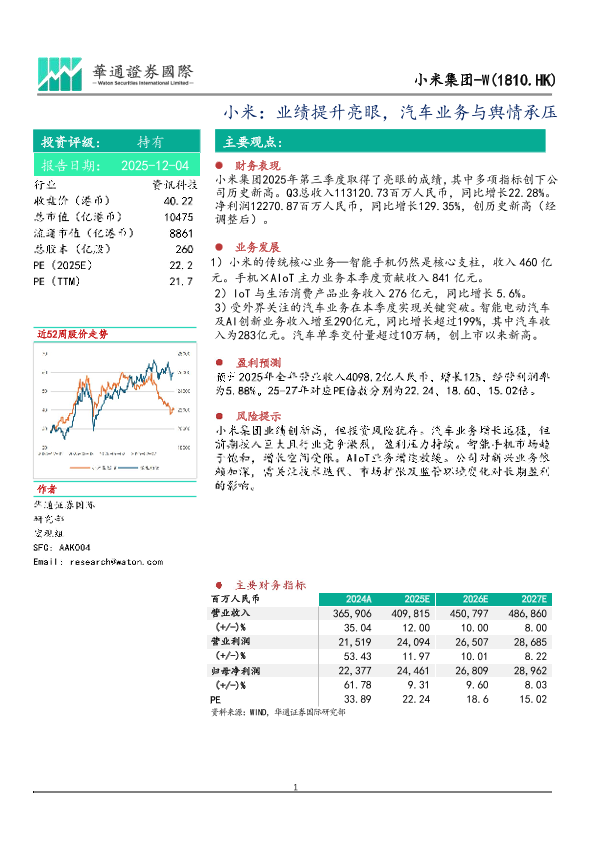 【华通证券国际】【202512】小米:业绩提升亮眼,汽车业务与舆情承压-5页