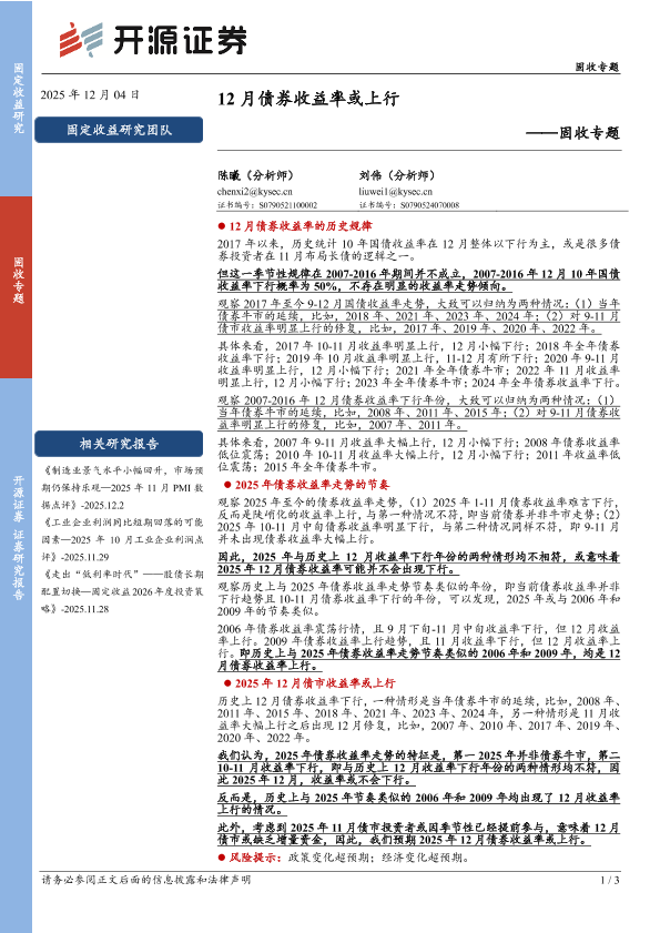 【开源证券】【202512】12月债券收益率或上行-3页