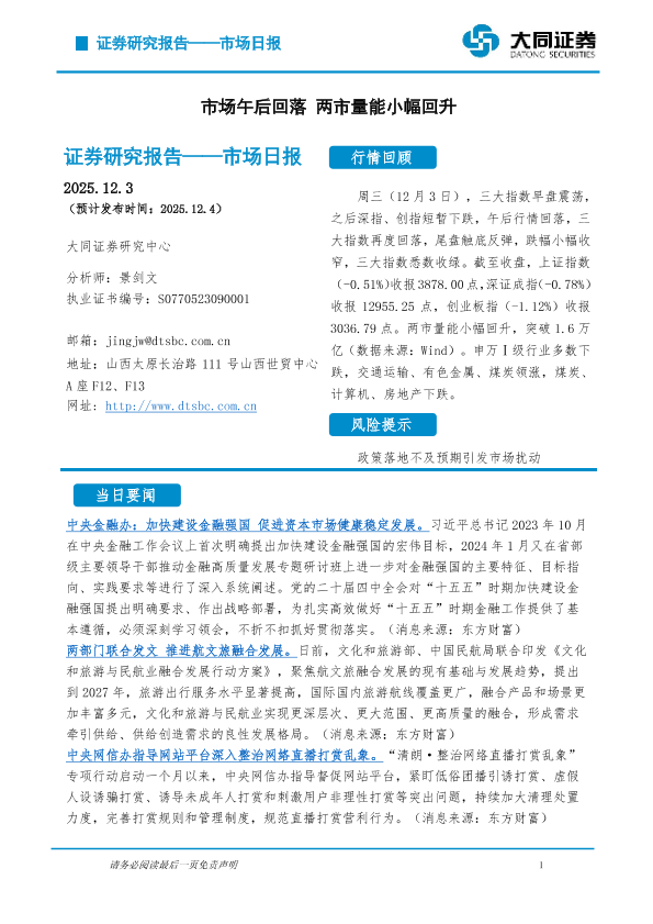 【大同证券】【202512】市场日报-5页