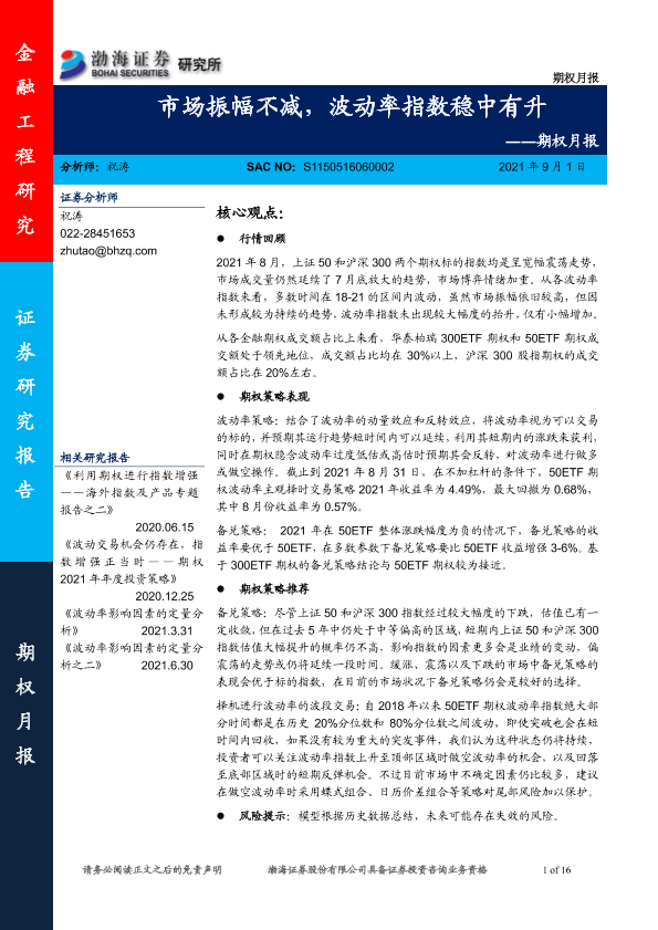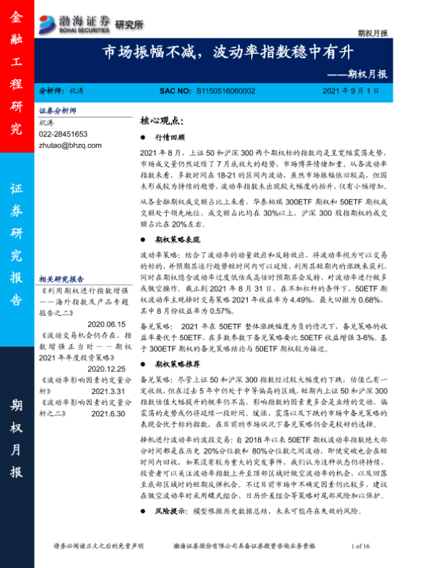 【渤海证券】【20210901】期权月报:市场振幅不减,波动率指数稳中有升-16页