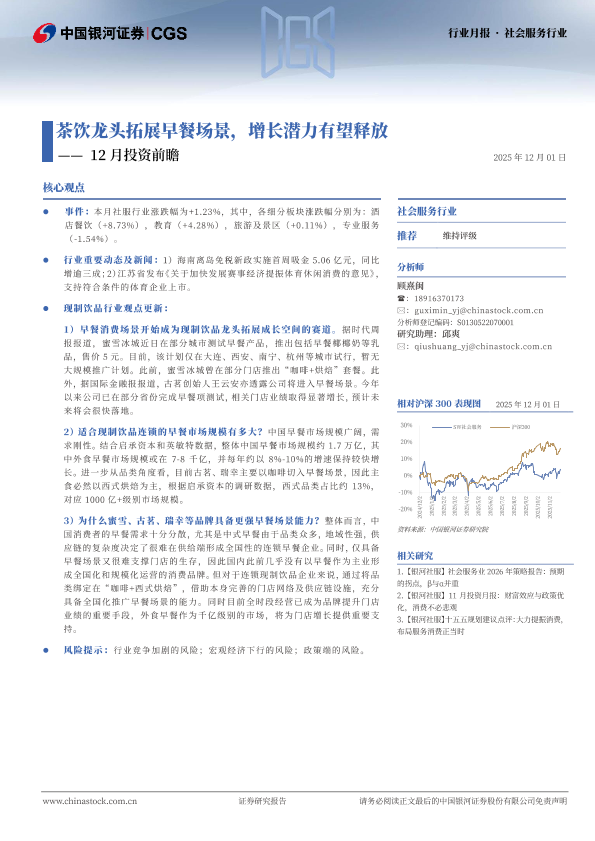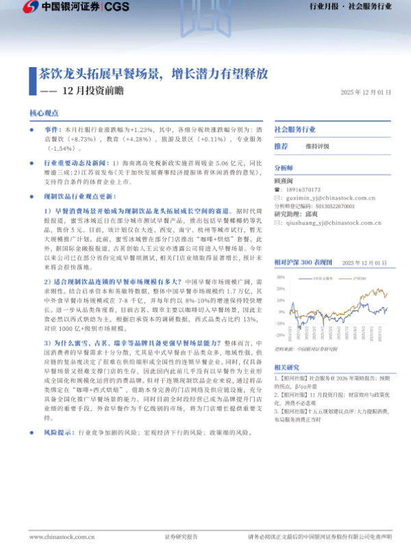投资前瞻 社会服务 茶饮行业 早餐经济 消费趋势