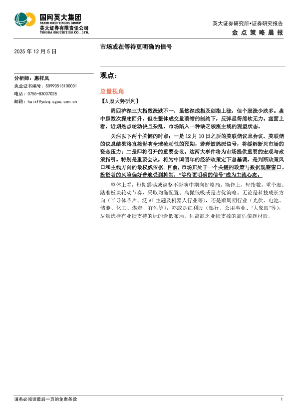 【英大证券】【202512】金点策略晨报:市场或在等待更明确的信号-4页