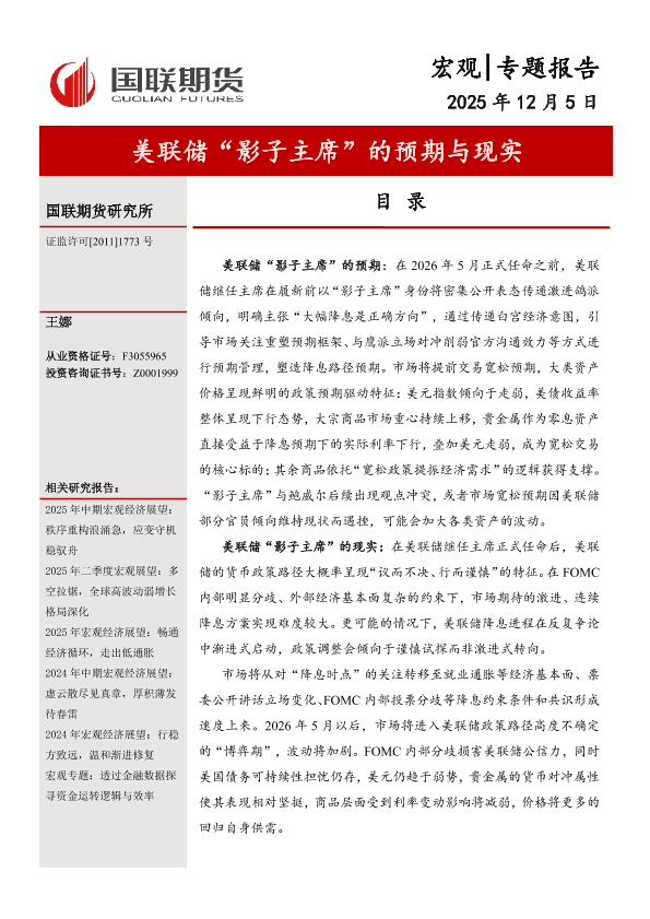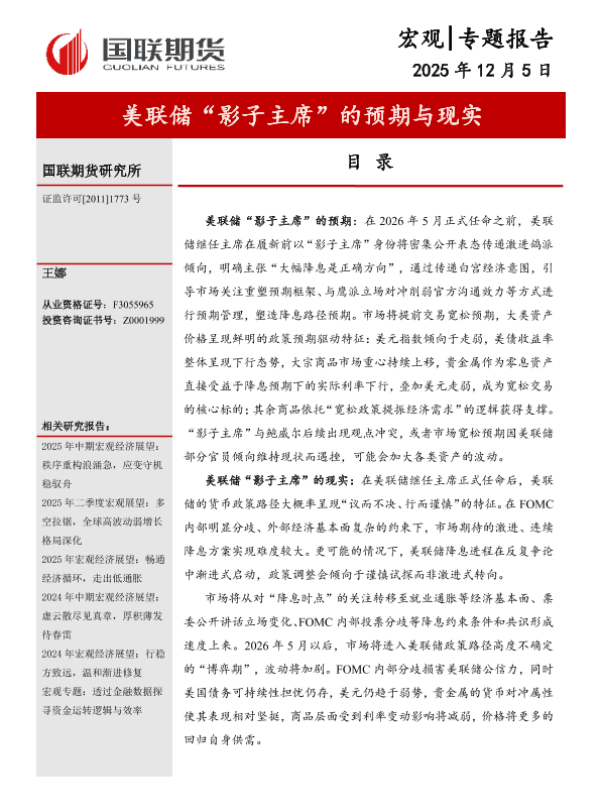 【国联期货研究所】【202512】美联储“影子主席”的预期与现实-11页