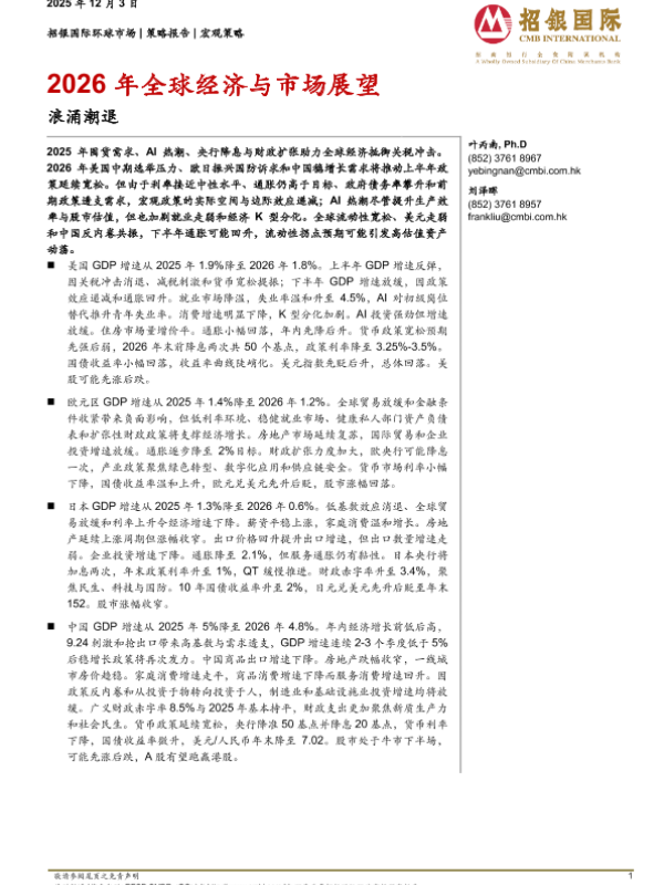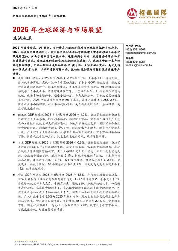 【招银国际环球市场】【202512】2026年全球经济与市场展望:浪涌潮退-34页