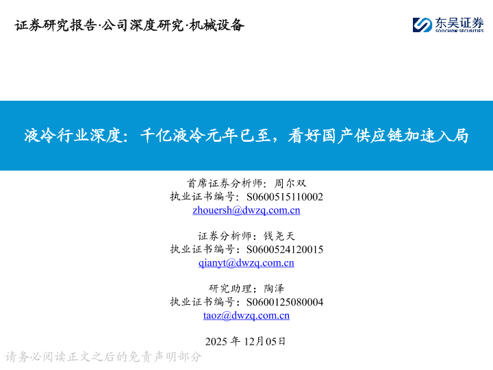 【东吴证券】【202512】液冷行业深度:千亿液冷元年已至,看好国产供应链加速入局-43页