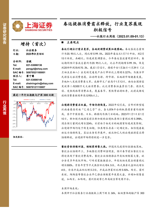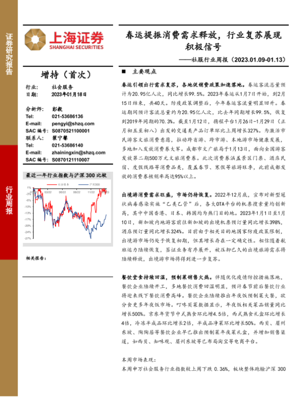 【上海证券】【20230118】社服行业周报:春运提振消费需求释放,行业复苏展现积极信号-15页