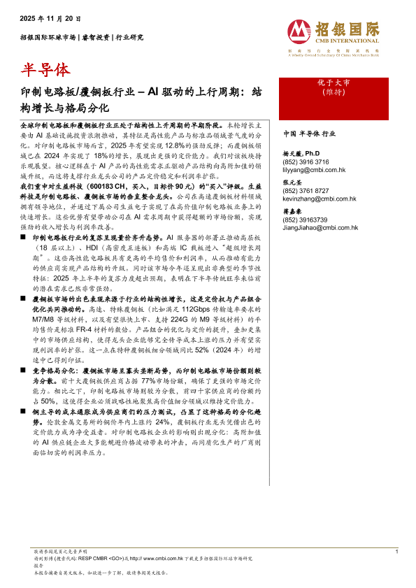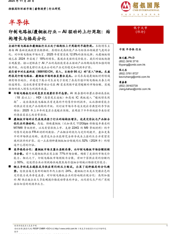 竞争格局 半导体行业 AI基础设施 印制电路板 覆铜板