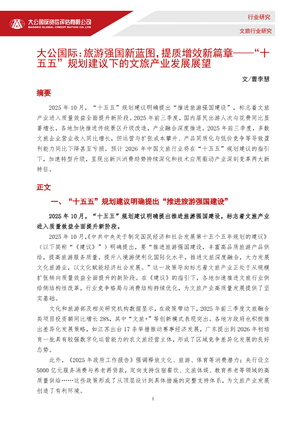 【大公国际】【2025】旅游强国新蓝图,提质增效新篇章——“十五五”规划建议下的文旅产业发展展望-4页