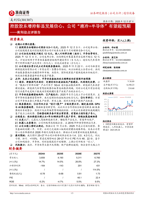 【浙商证券】【202512】控股股东增持彰显发展信心,公司“液冷+半导体”有望超预期——美利信点评报告-3页