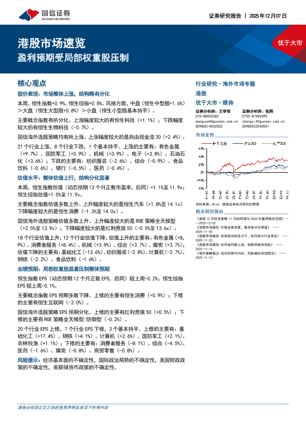 【国信证券】【202512】港股市场速览-盈利预期受局部权重股压制-20页