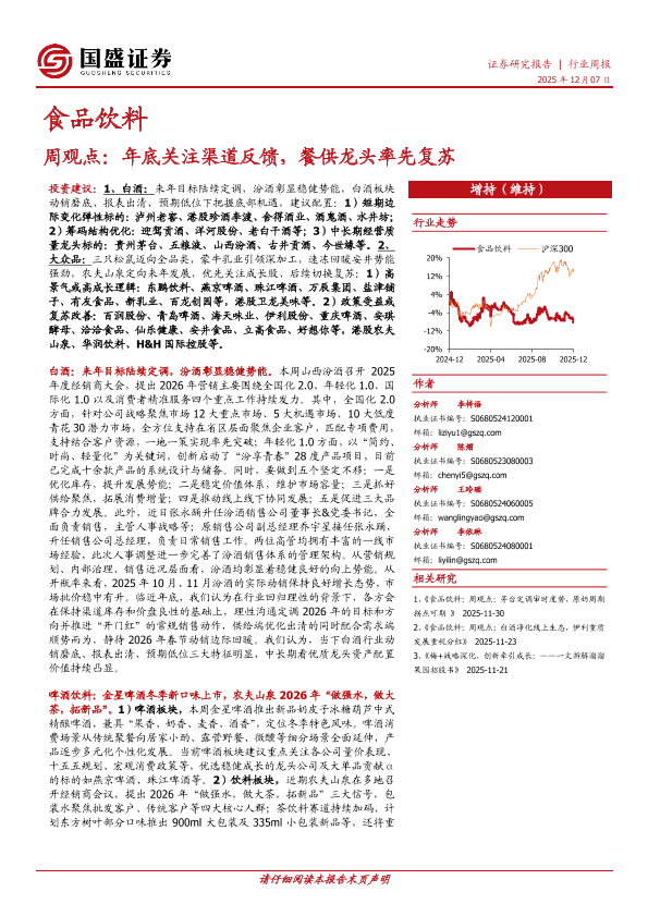 【国盛证券】【202512】食品饮料周观点_年底关注渠道反馈_餐供龙头率先复苏-3页