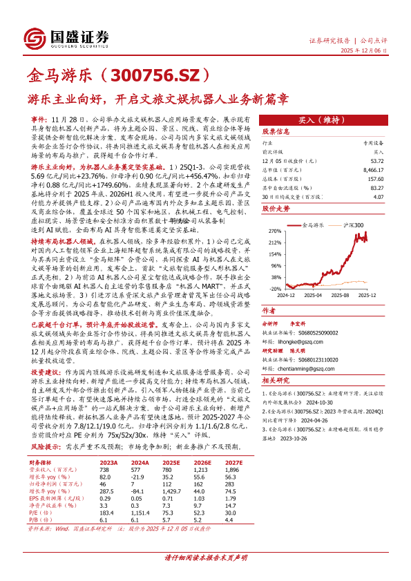 【国盛证券】【202512】游乐主业向好,开启文旅文娱机器人业务新篇章-3页