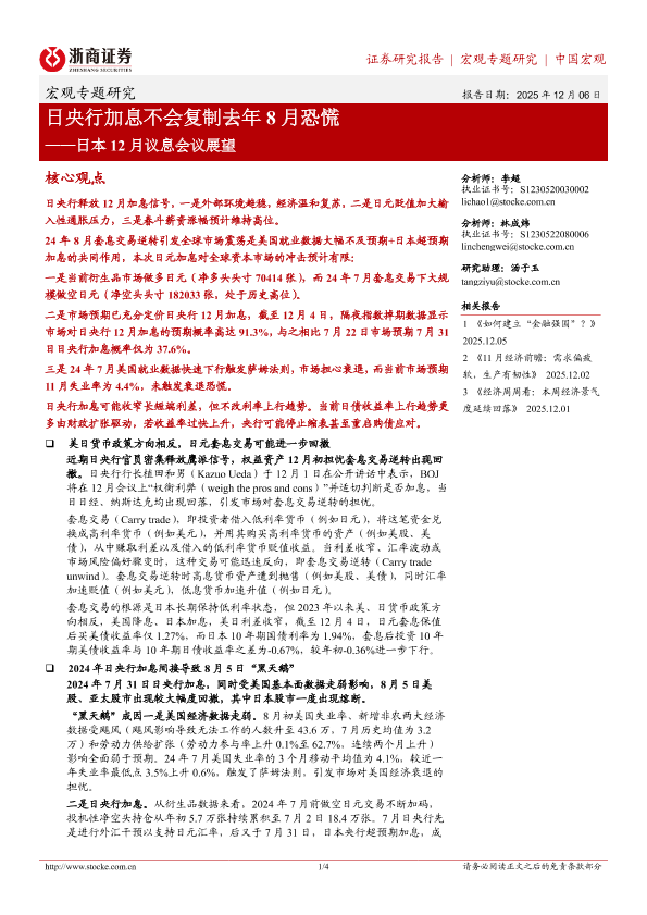【浙商证券】【202512】日央行加息不会复制去年 8月恐慌——日本 12月议息会议展望-4页