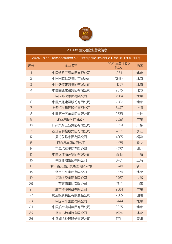 【中国交通智库】【2024】2024中国交通企业营收信息-16页