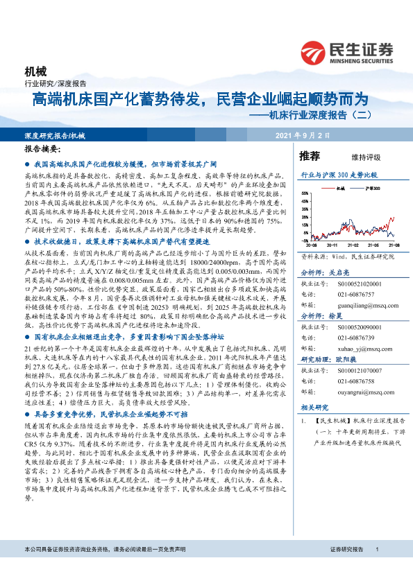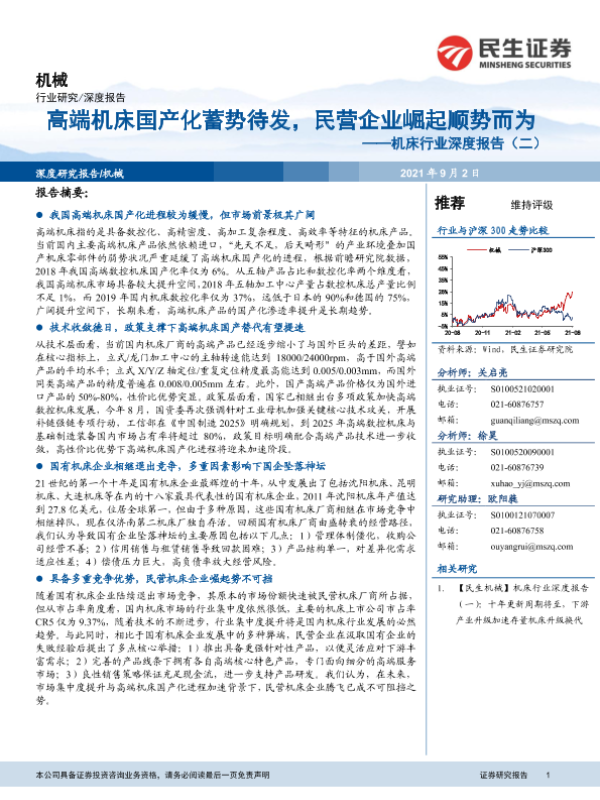 【民生证券】【20210902】机床行业深度报告(二):高端机床国产化蓄势待发,民营企业崛起顺势而为-33页