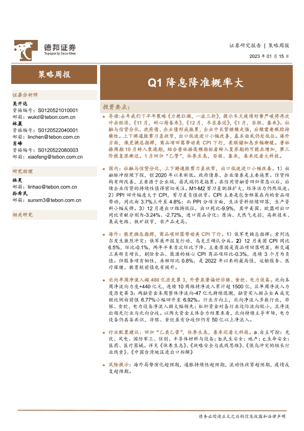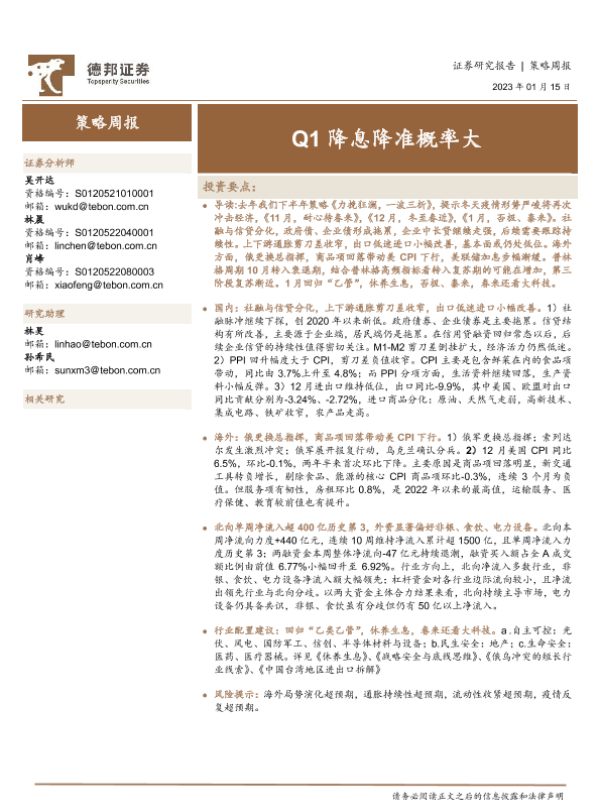 【德邦证券】【20230115】策略周报:Q1降息降准概率大-19页