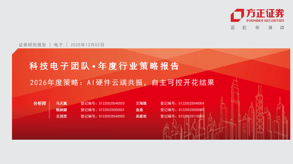 【方正证券】【2025】科技电子团队 •年度行业策略报告2026年度策略:AI硬件云端共振,自主可控开花结果-48页