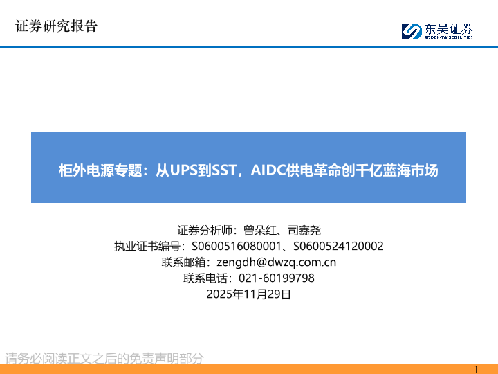 【东吴证券】【202511】柜外电源专题 从UPS到SST,AIDC供电革命创千亿蓝海市场-51页