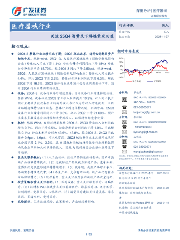 【广发证券】【202511】医疗器械行业_关注25Q4消费及下游端需求回暖-22页