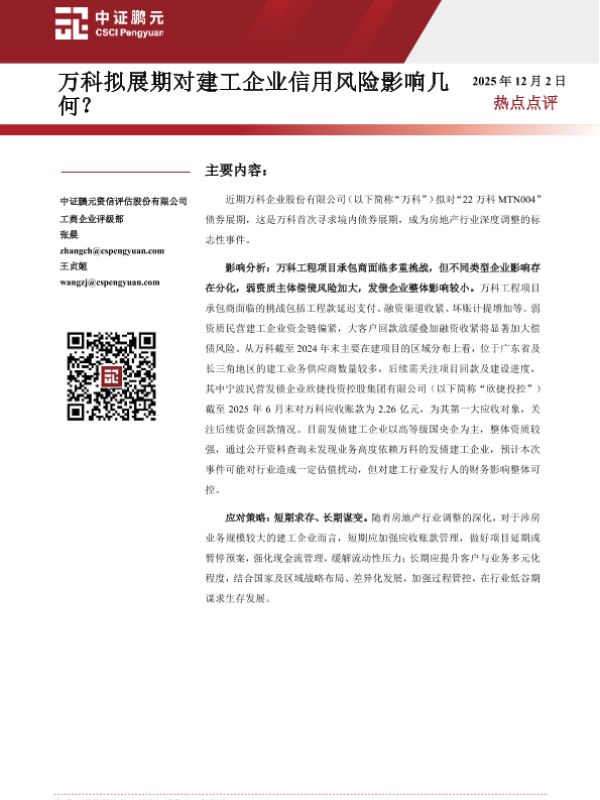 【中证鹏元资信评估股份有限公司】【202512】万科拟展期对建工企业信用风险影响几何?-7页