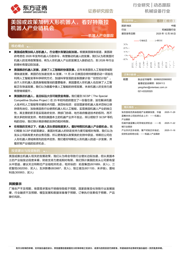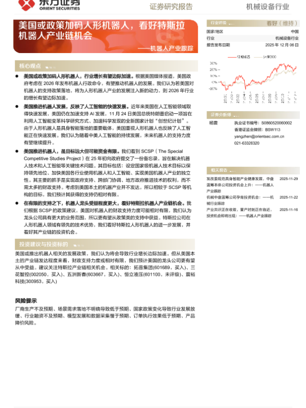 【东方证券】【202512】美国或政策加码人形机器人,看好特斯拉机器人产业链机会-3页
