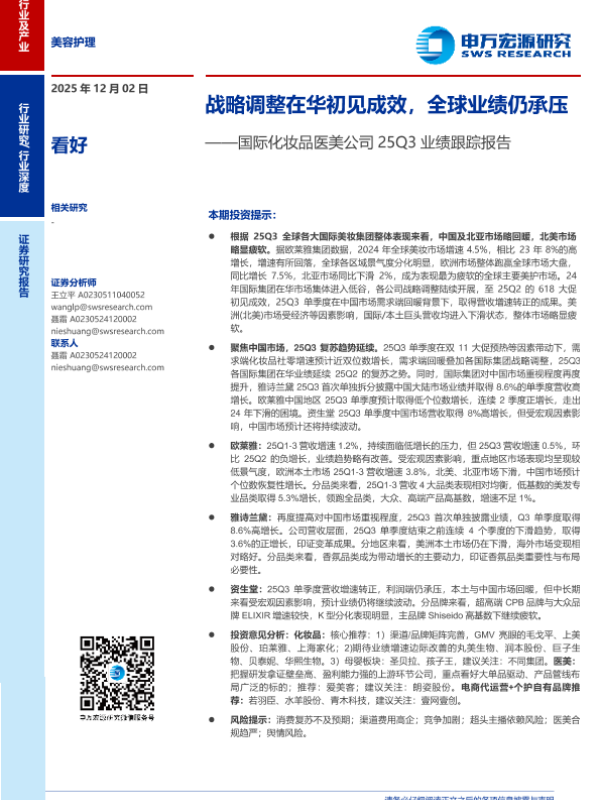 【申万宏源】【202512】国际化妆品医美公司25Q3业绩跟踪报告——战略调整在华初见成效_全球业绩仍承压-23页