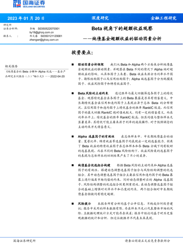 【国海证券】【20230120】纯债基金超额收益的驱动因素分析:Beta视角下的超额收益观察-33页