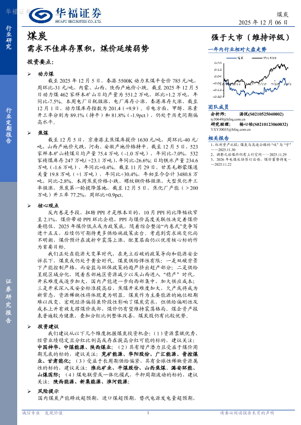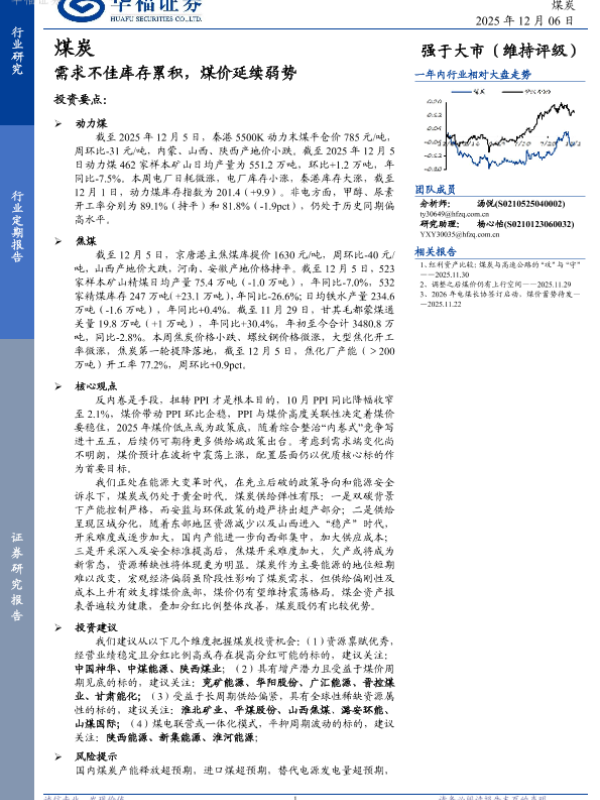 【华福证券】【202512】需求不佳库存累积,煤价延续弱势-26页
