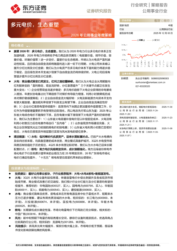 【东方证券】【202512】2026年公用事业年度策略_多元电价_生态重塑-69页