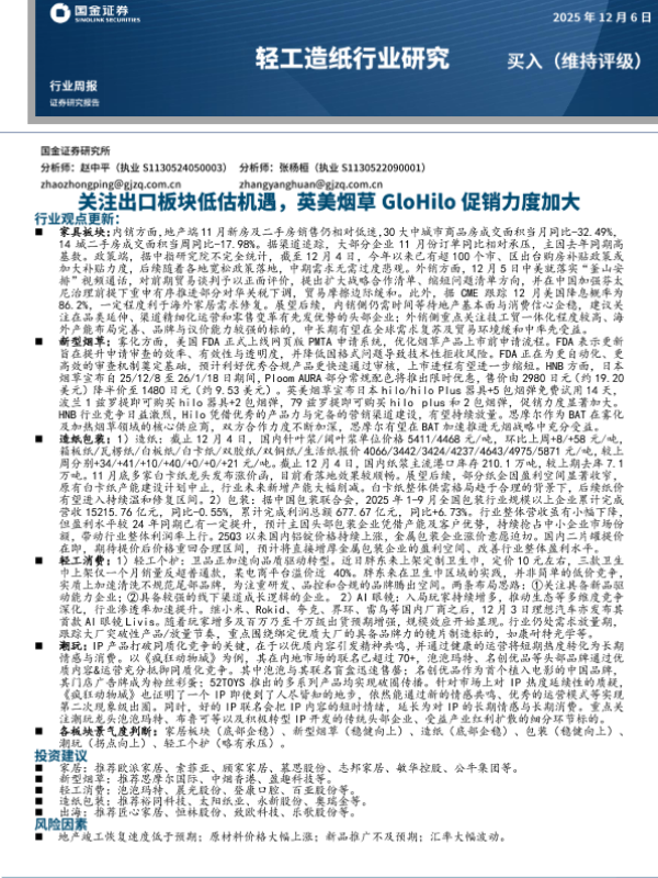 新型烟草 造纸行业 轻工制造 家居消费 潮玩产业