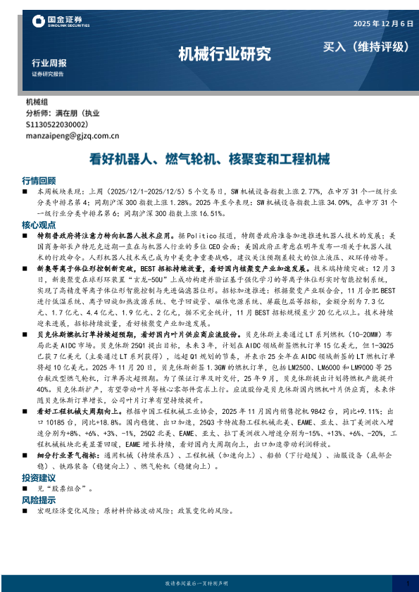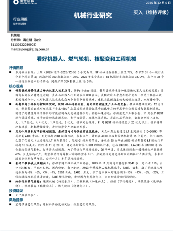 【国金证券】【202512】机械行业研究_看好机器人_燃气轮机_核聚变和工程机械-16页