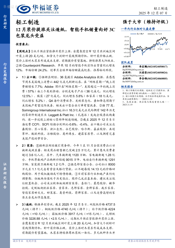 【华福证券】【202512】12月浆价提涨关注造纸,智能手机销量向好3C包装龙头受益-19页