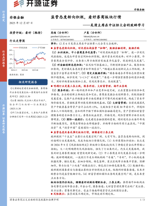 【开源证券】【202512】监管态度转向积极,看好券商板块行情——吴清主席在中证协大会的致辞学习-3页