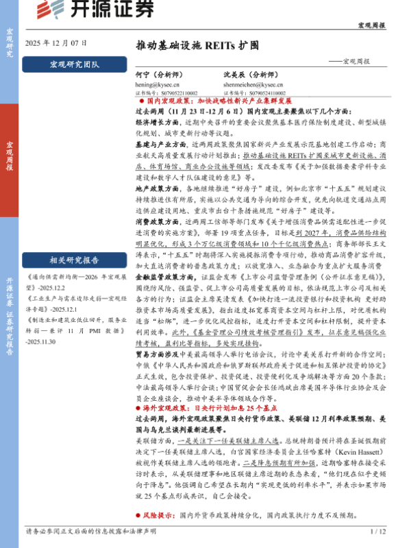 【开源证券】【202512】推动基础设施 REITs扩围——宏观周报-12页