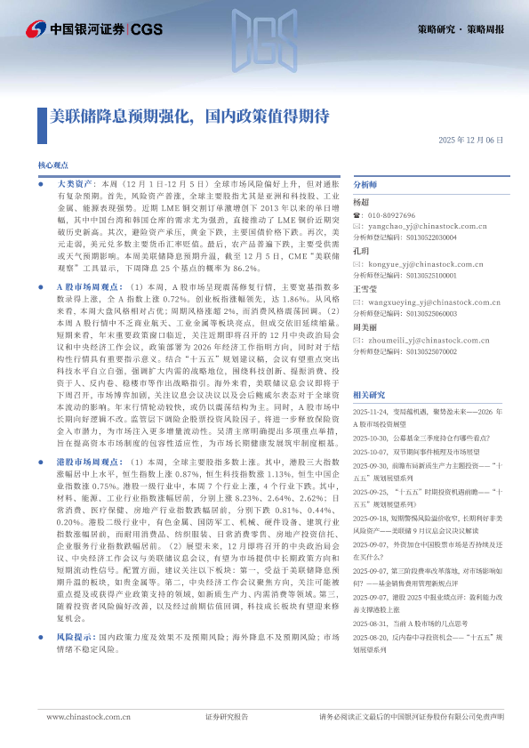 【银河证券】【202512】美联储降息预期强化,国内政策值得期待-13页