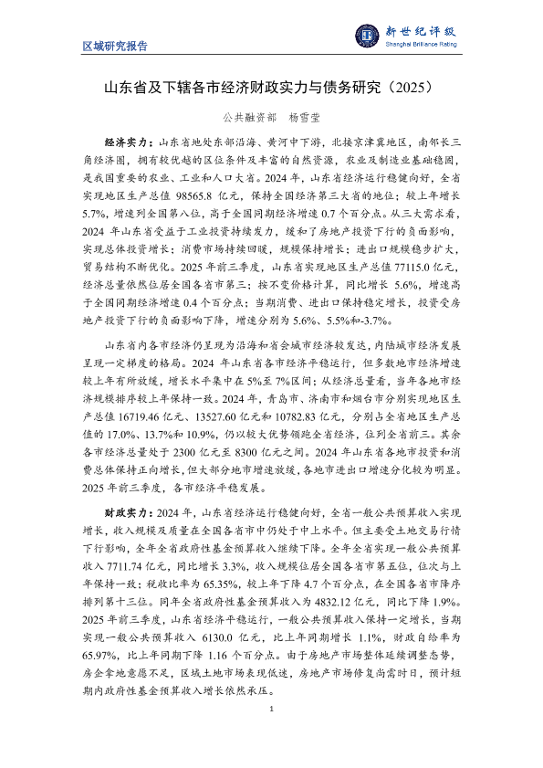 【公共融资部 杨雪莹】【2025】山东省及下辖各市经济财政实力与债务研究(2025)-27页
