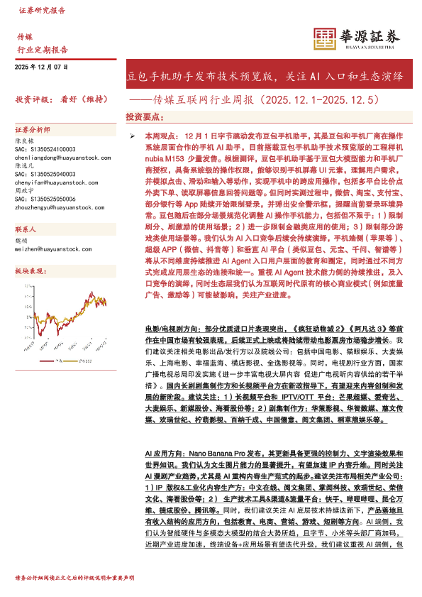 AI入口 AI生态 豆包手机助手 传媒互联网 行业周报