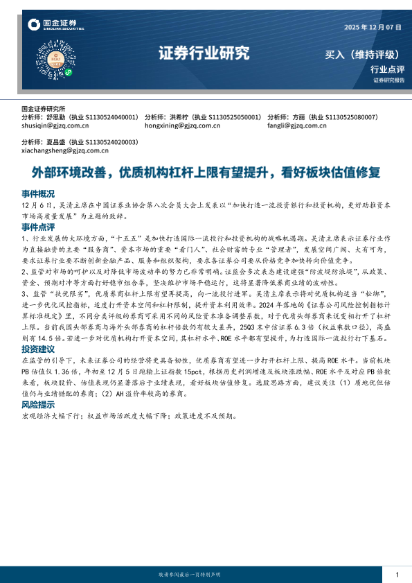 【国金证券】【202312】外部环境改善,优质机构杠杆上限有望提升,看好板块估值修复-3页