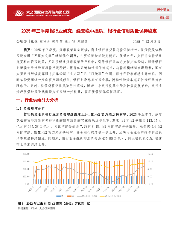 【大公国际】【202512】2025年三季度银行业研究:经营稳中提质,银行业信用质量保持稳定-10页