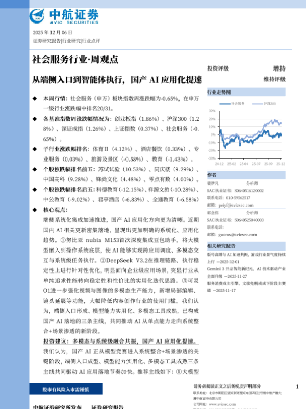 【中航证券】【202512】社会服务行业·周观点:从端侧入口到智能体执行,国产AI应用化提速-10页