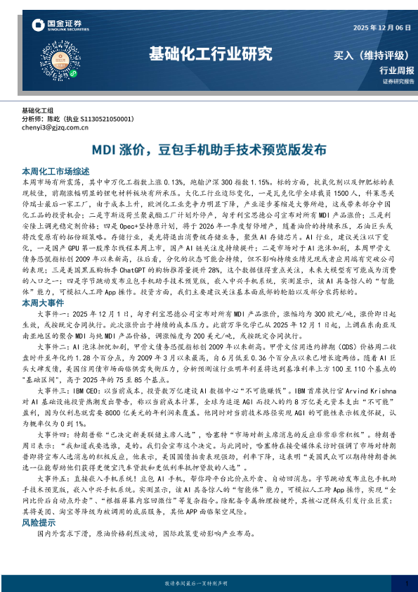 【国金证券】【202512】基础化工行业研究:MDI涨价,豆包手机助手技术预览版发布-24页